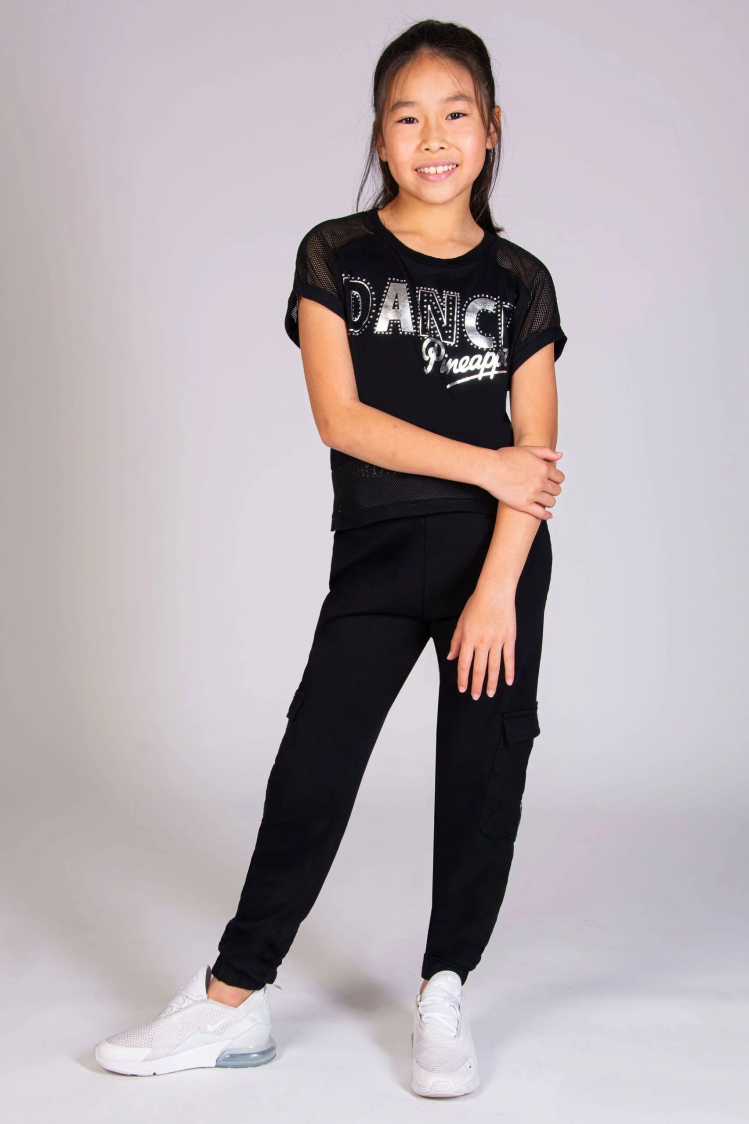 Model is wearing size 9-10 years paired with essential Pineapple Pocket Cargo Joggers.