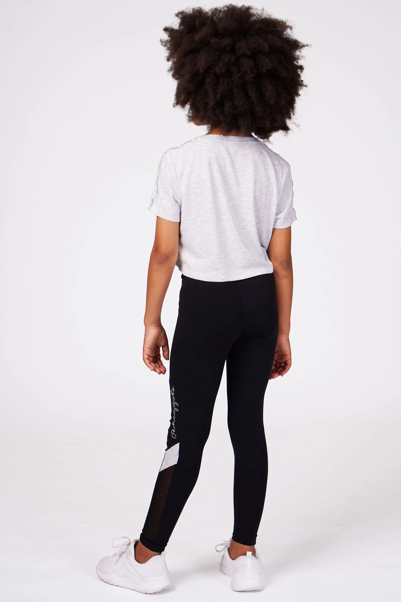 Made in our stretchy cotton rich blend with double layer waistband and contrast colour panels, these leggings go with nearly everything! Featuring power mesh panel inserts and foil logo.