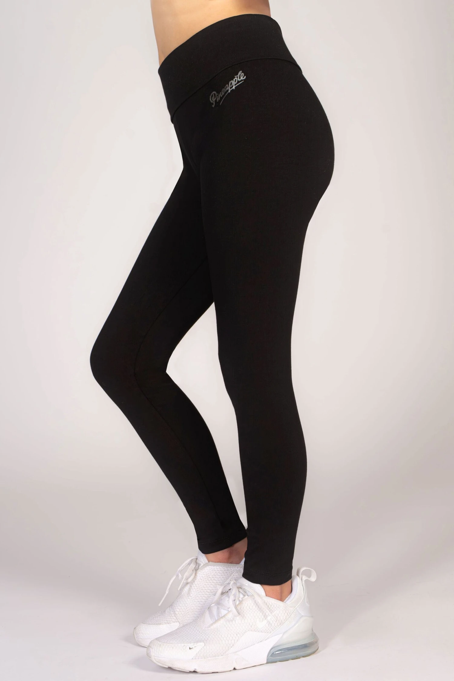 These black leggings for girls are soft and comfortable to wear all day long. Decorated with a fold over branded waistband and Pineapple badge on hip, these fitted leggings give kids great freedom of movement!