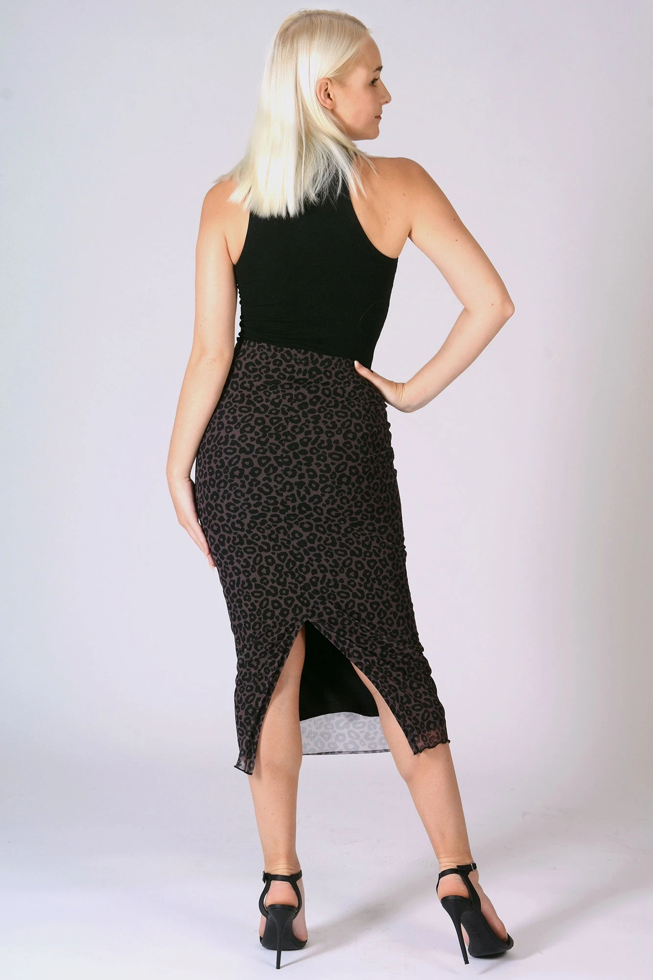 This Pineapple A-line two-layer skirt gives a flattering fit that is just right for a day-to-night outfit. We love the pairing of the light, floaty mesh leopard-print top layer with a comfortable viscose underlayer with stretch. Wear with layered tops to take you from day to date in one gorgeous piece!