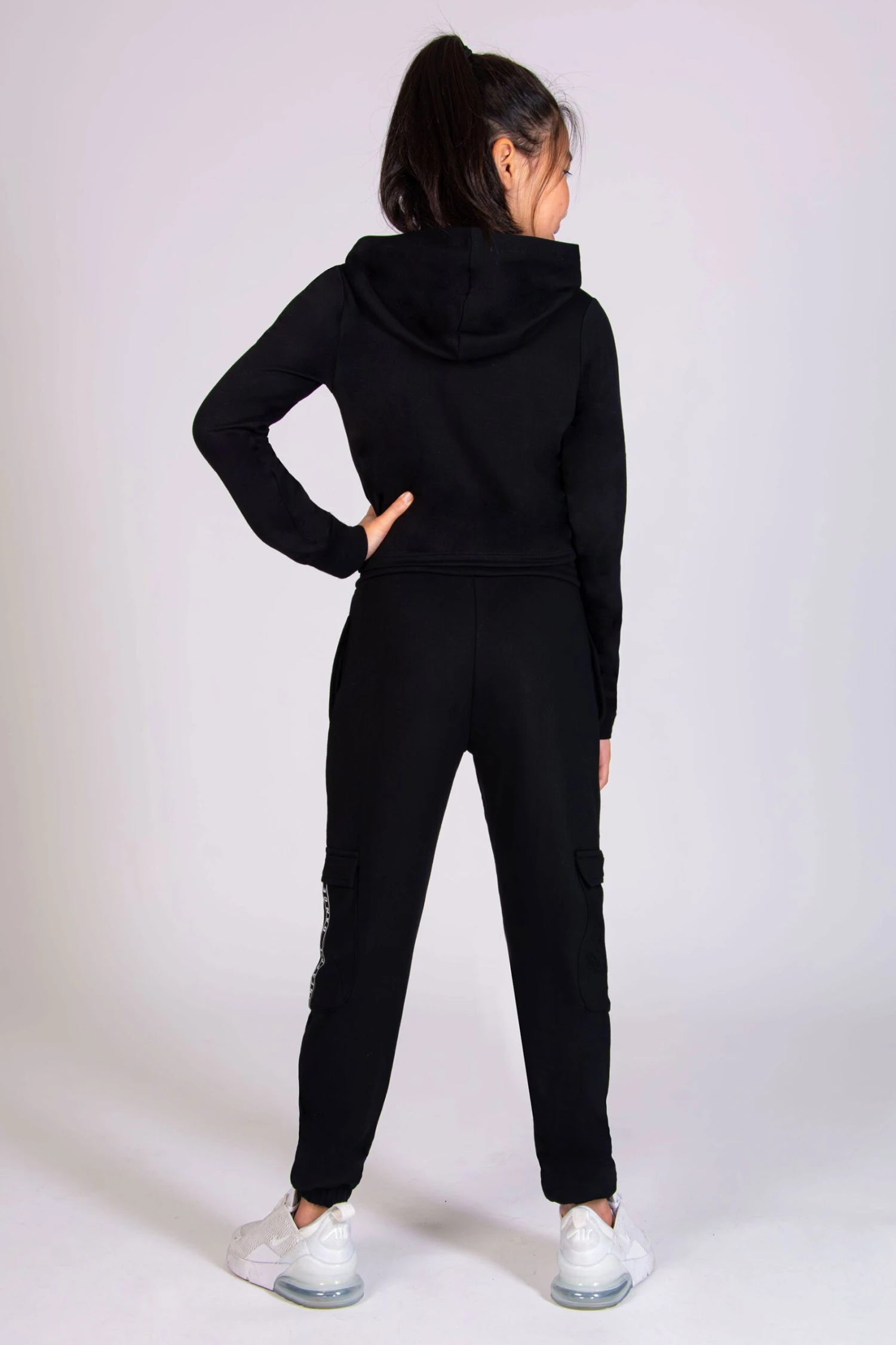 Made to be your new everyday essential – this black crop hoodie with silver foil logo across the chest goes with all your wardrobe staples. Perfectly paired with leggings, joggers or shorts, you will never look out of style!Â