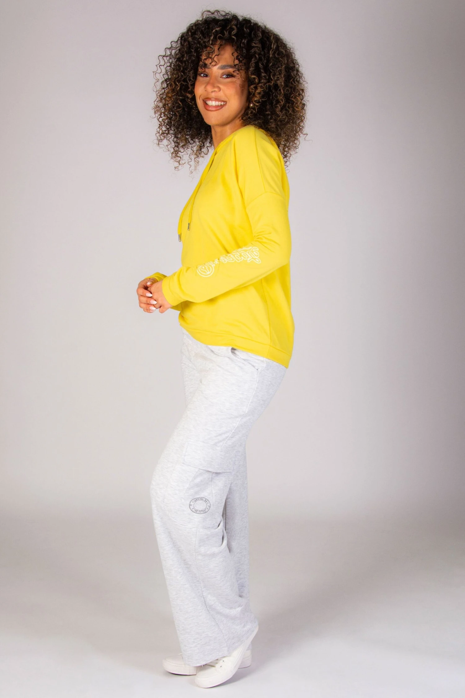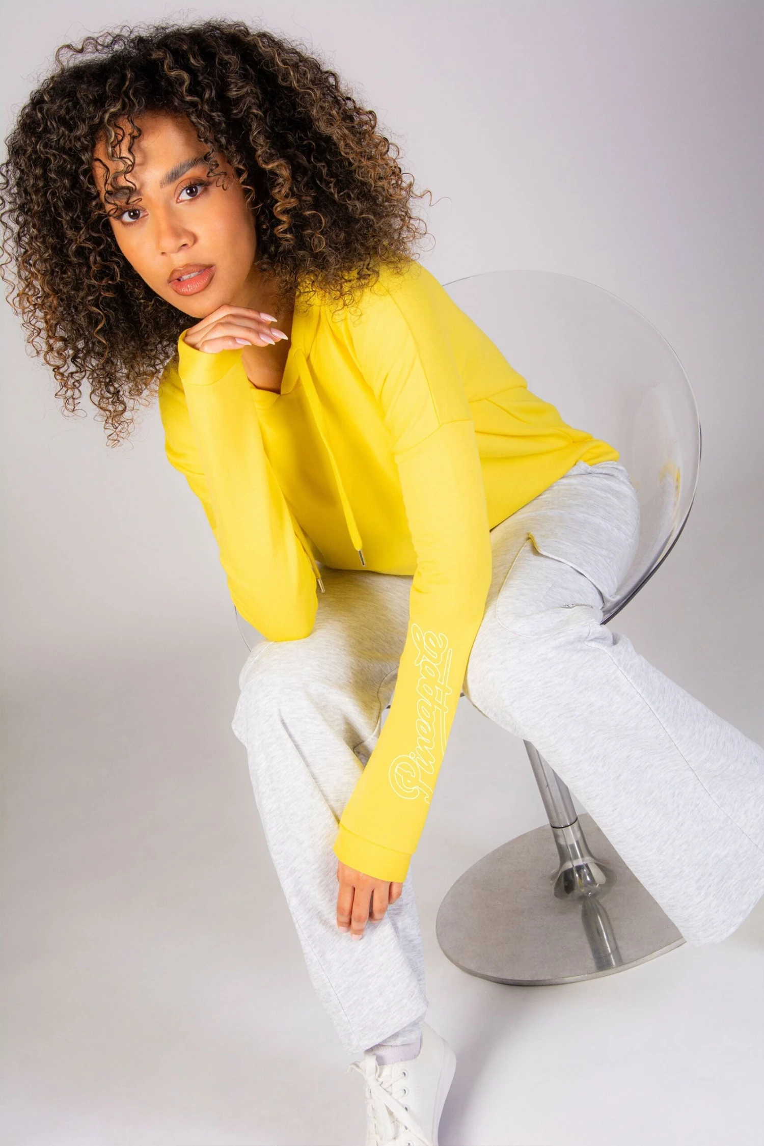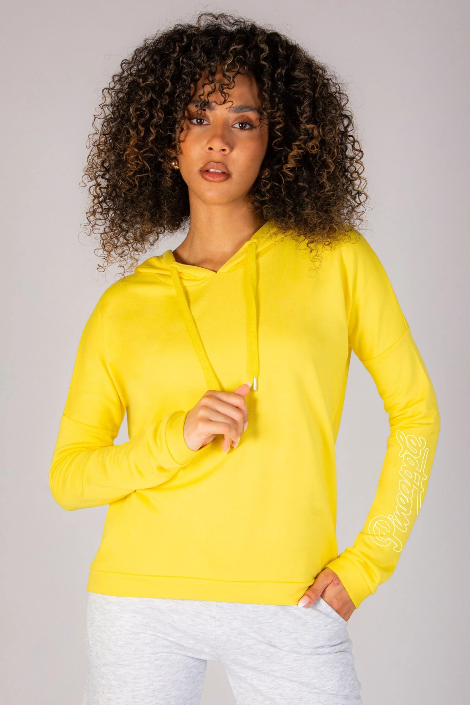 Refresh your wardrobe this season with our favourite Pineapple hoodie in our fun Spring yellow! Classic boxy fit with an instant relaxed feel, it falls just below the waist line and has a subtle dipped back hem. Complete with drawcords and an outline logo on the sleeve.