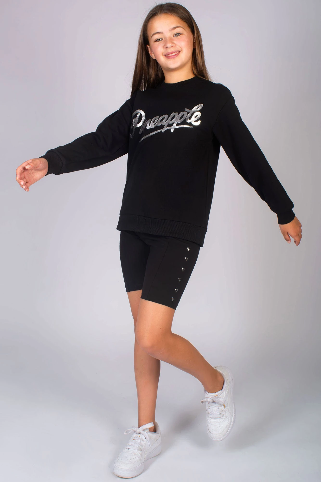 Whether you are travelling or just having a chill weekend, this crew neck logo black sweatshirt for girls is the go-to peice! In a subtle baggy realxed fit, it is easy to style back with your Pineapple favourites. Made in our soft and cosy cotton polyester blend.