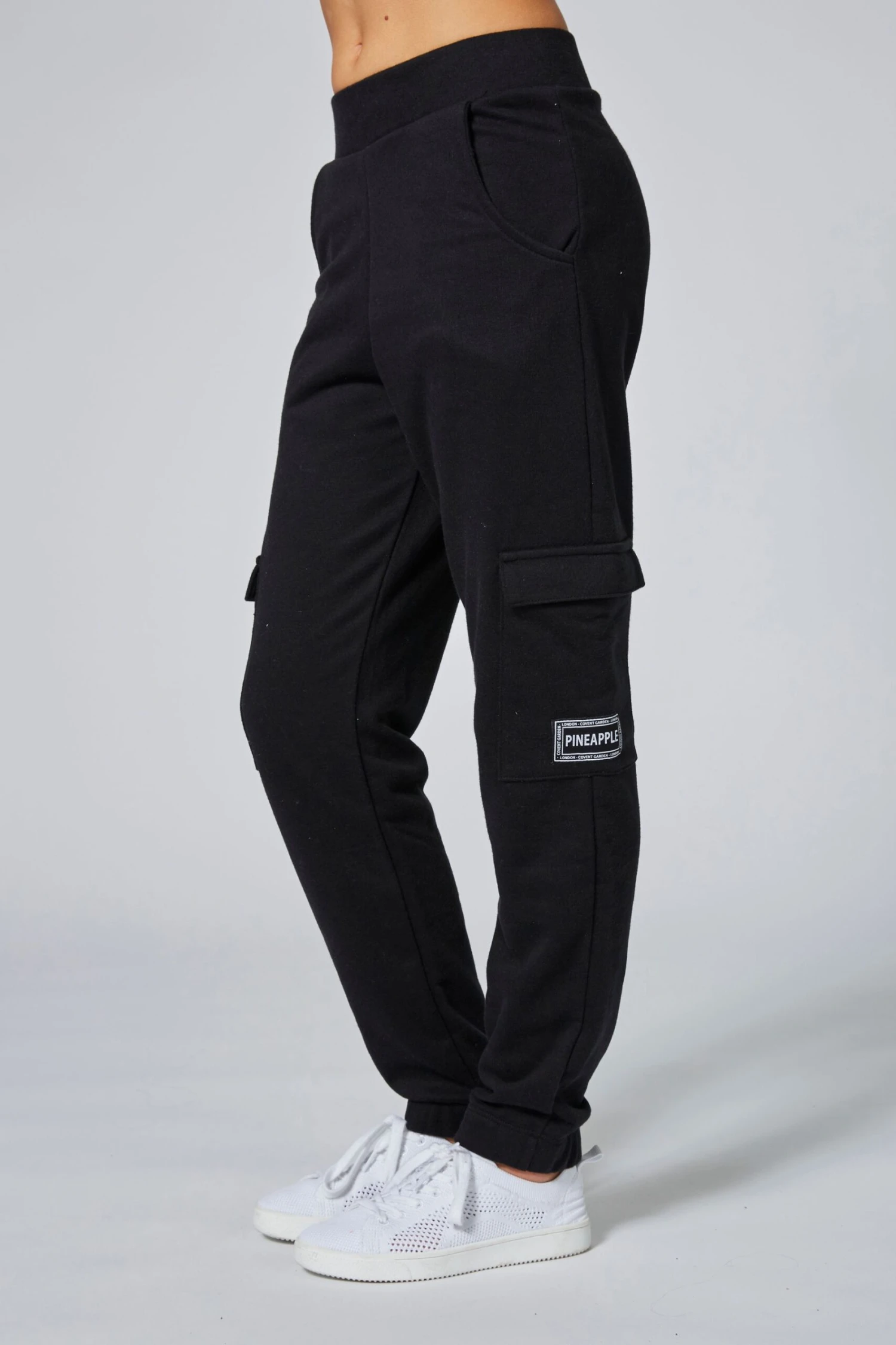 Pineapple girls cargo style joggers with a woven logo badge. With elasticated waistband and cuffs for an easy pull-on and fit. Dance or lounge, you will want to wear these all day long! Featuring curved top pockets and cargo side pockets with unfastened flaps.