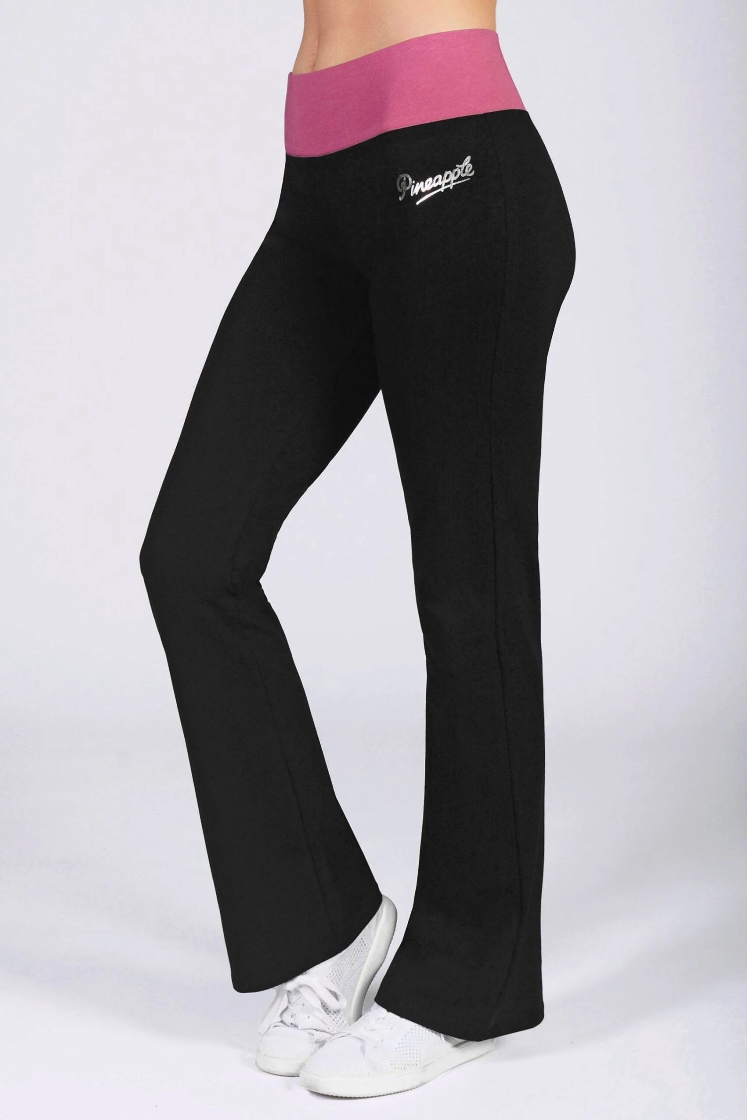 This signature full length jersey trouser is great for low impact workout and casual lounge. It has superb stretch for a comfy and relaxed fit. Featuring a stomach flattening waistband in contrast colour, this piece comfortably holds you in and is complete with a Pineapple hip logo.