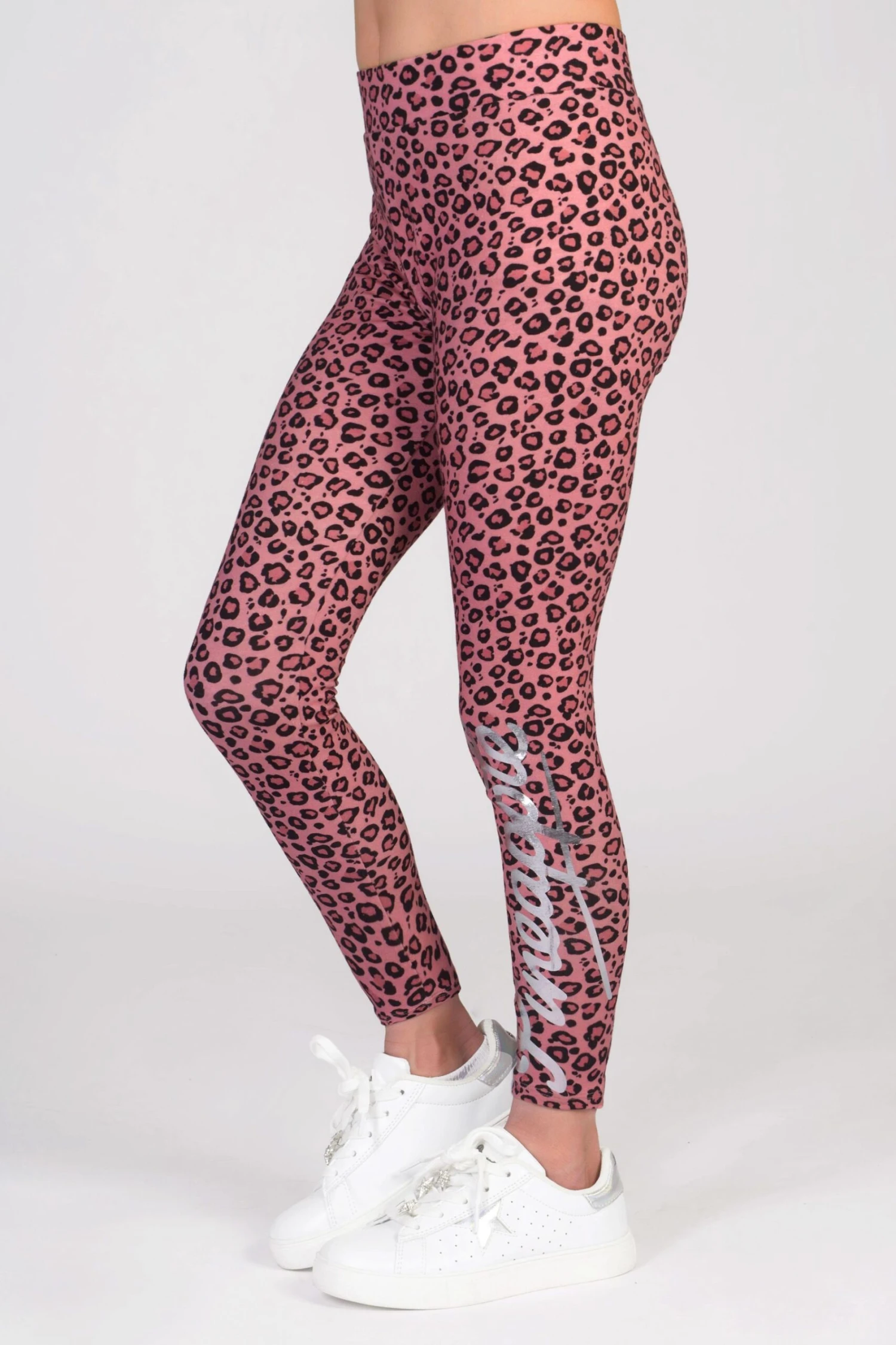Our essential cotton rich stretchy leggings in our fun and pretty all over leopard print finished with foil logo print on the leg. Matching items availble for the full co-ord look.