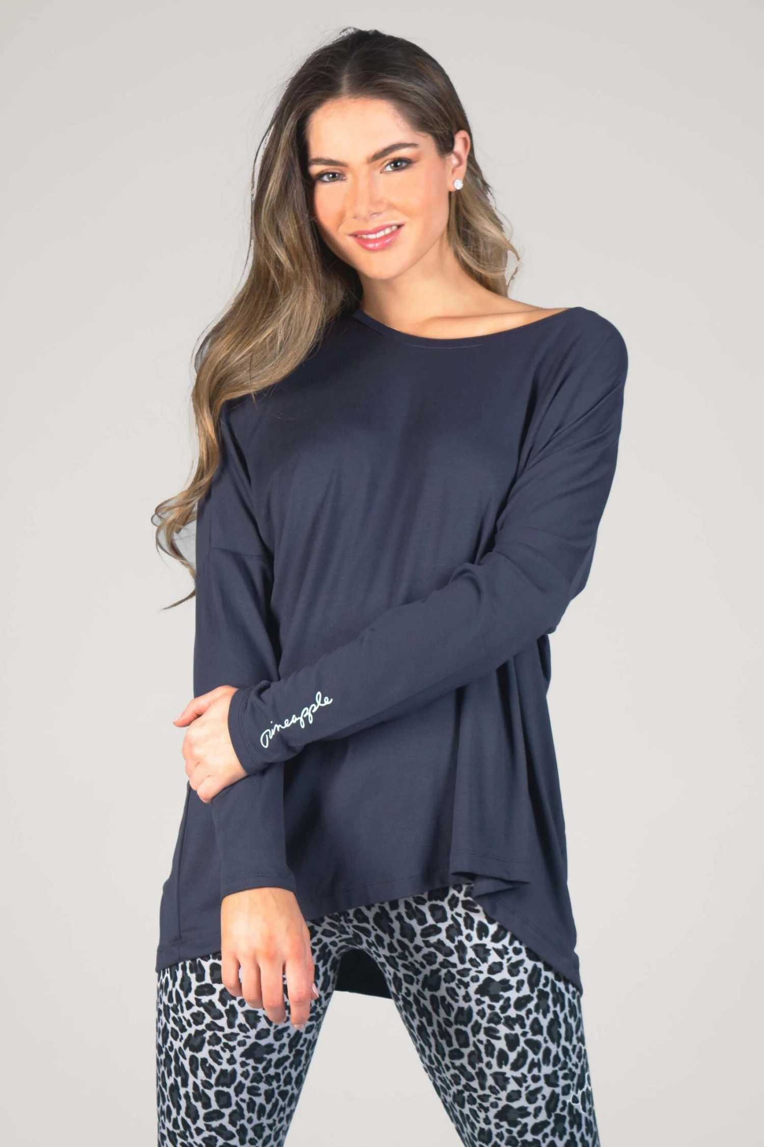 Long sleeve tunic style top made in their soft viscose blend and fit for all occasions. Featuring small logo on sleeve and subtle dipped hem.