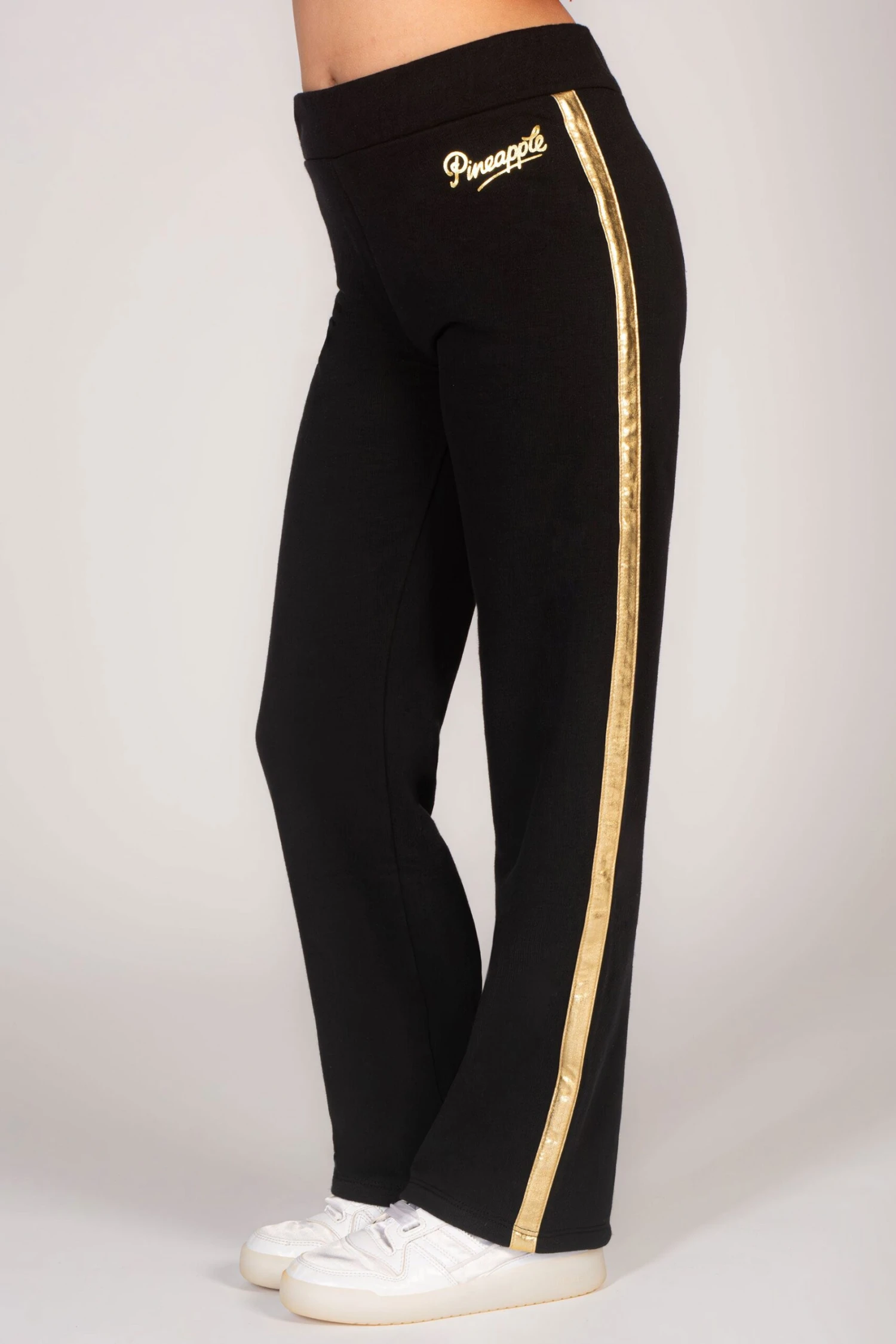 A Pineapple lounge favourite! Made in our soft cotton poly blend, these wide leg joggers features a contrast stripe down the leg and elasticated rib waistband for a secure and customised fit. Finished with a small foil logo on the hip.