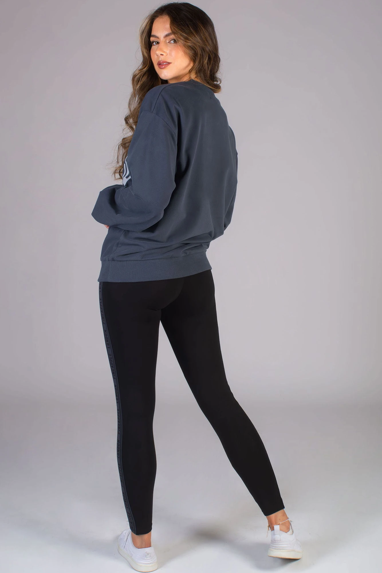 Model is wearing size extra small with Charcoal Oversized Sweatshirt.